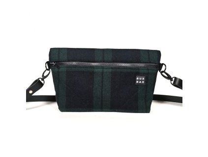 Originální zelená vzorovaná ledvinka s koženým popruhem je praktická, lehká a snadno se kombinuje s Vaším outfitem.